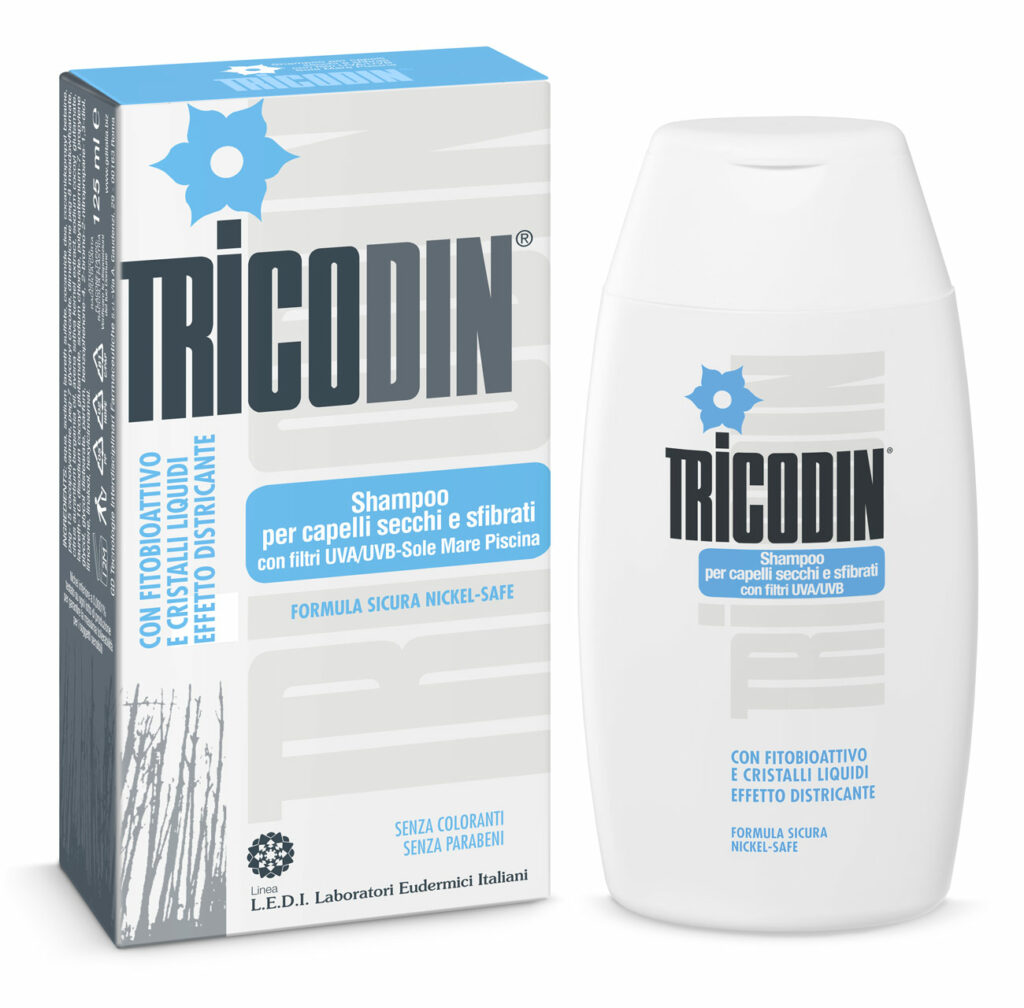 Tricodin Shampoo for Dry and Damaged Hair is the most suitable cleanser to give new light and vigor to stressed and damaged hair. A treatment shampoo that not only guarantees a deep and delicate cleansing, but acts directly on the hair, giving it new strength, body and health. Our lifestyle habits and some particular conditions can put a strain on the hair, damage its structure, make it finer and weaker. We think of hormonal imbalances, vitamin shortages due to inadequate diets or some drug therapies. In all these cases, a simple washing is not enough. There is a need for a complete restructuring, nourishing, moisturizing and protective treatment, such as that offered by the rich formula of Tricodin Shampoo for Dry and Damaged Hair.